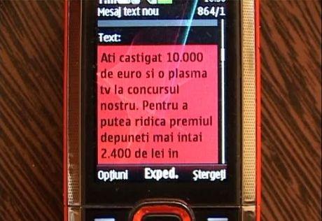 Poliţiştii au verificat 36 de celule, după ce au primit o sesizare de la tânără care s-a plâns că fost înşelată cu suma de 2400 lei. Femeia a fost anunţată printr-un SMS că a câştigat un premiu de 10.000 euro şi o plasmă TV. Pentru a intra în posesia premiului fictiv trebuia să transfere 2.400 lei, taxe şi comisioane.
