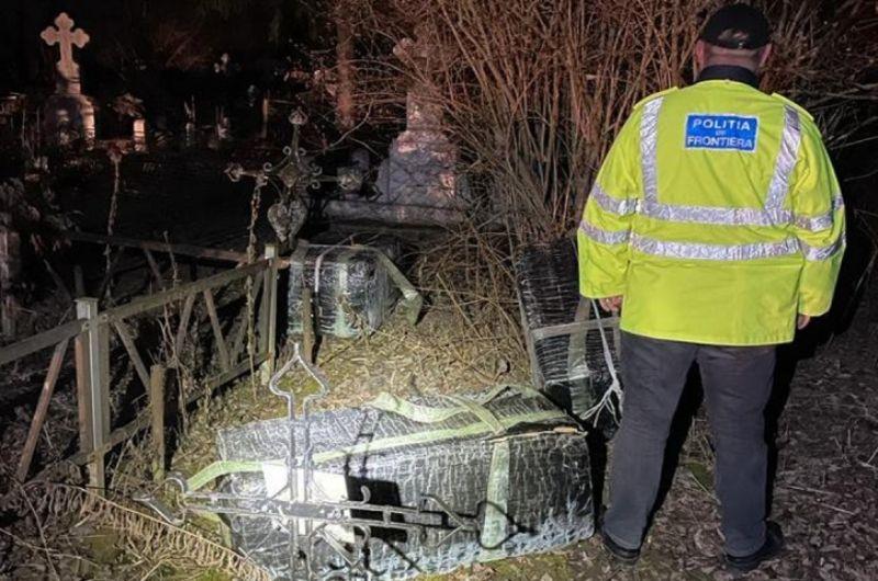 Polițiștii de frontieră botoşăneni au descoperit, în urma unei acțiuni desfășurate în zona de competenţă, 6.734 de pachete cu ţigarete de contrabandă, în valoare totală de aproximativ 68.000 de lei, ascunse într-un cimitir.