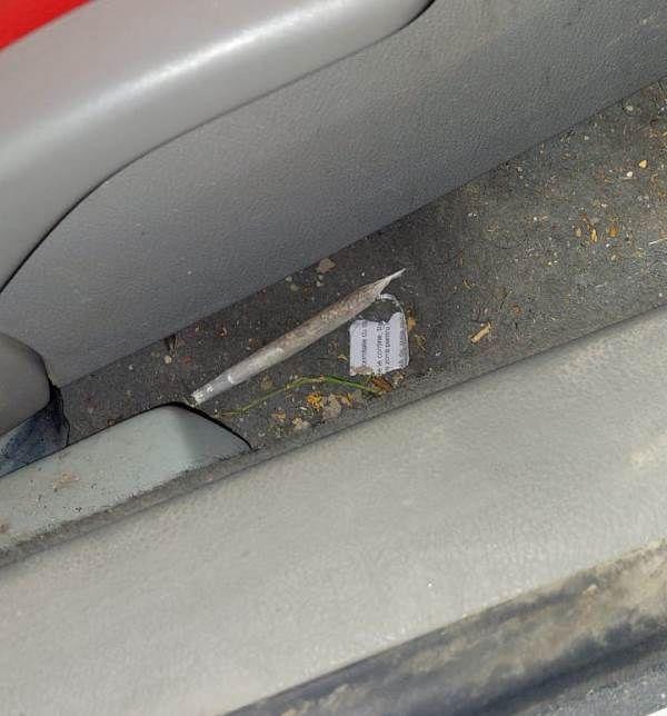 Verificările habitaclului au scos la iveală două țigarete confecționate artizanal ce conțineau un amestec vegetal cu miros înțepător, câțiva muguri vegetali cu aceeași aromă inconfundabilă si o râșniță pentru substanțe vegetale.
