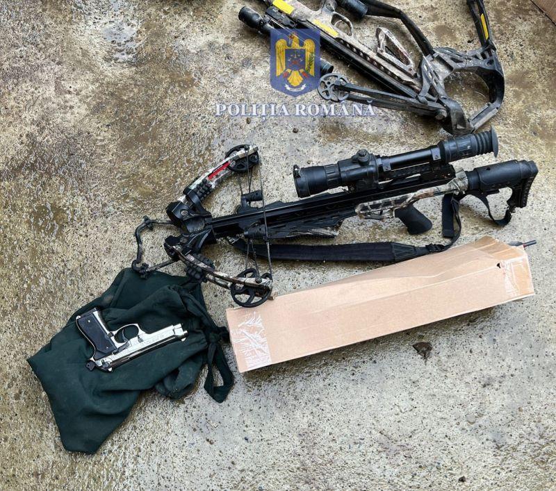 Cu prilejul perchezițiilor au fost identificate și ridicate în vederea continuării cercetărilor două arbalete cu lunetă prevăzute cu 26 de săgeți cu vârf, 500 de diablouri și o armă neletală supusă autorizării, despre care persoana percheziționată a declarat că ar fi procurat-o dintr-o altă țară, cercetările fiind extinse și pentru săvârșirea infracțiunii de contrabandă calificată.
