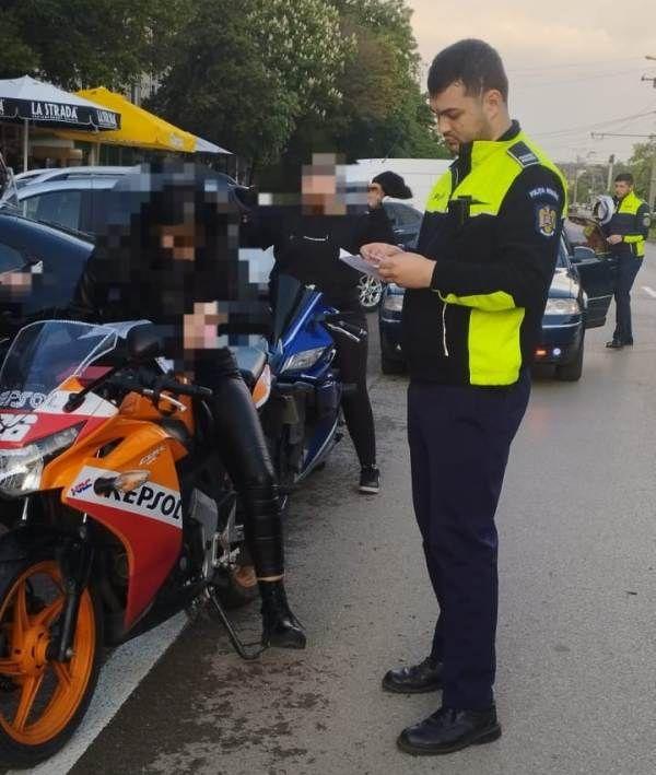 Dintre sancțiuni, 10 au fost aplicate conducătorilor de motociclete pentru defecțiuni tehnice, sisteme de evacuare neconforme (tobe fără amortizor de reducere a zgomotului) și lumini neomologate sau de altă intensitatea.
