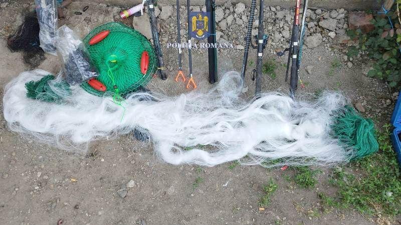 De asemenea, au fost identificate și ridicate în vederea continuării cercetărilor un autoturism, peste 2 kilometri de plasă tip monofilament, leșuri de animale, precum și alte bunuri folosite la comiterea infracțiunilor.