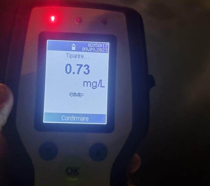 Tânărul a fost testat cu aparatul etilotest, valoarea rezultată fiind de 0,73 mg/l alcool pur în aerul expirat.