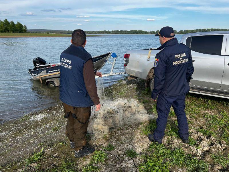 În ultima săptămână, poliţiştii de frontieră botoșăneni care executau misiuni de patrulare pe râul Prut sau în cooperare cu reprezentanți ai A.J.V.P.S. Botoșani, cu ambarcaţiile din dotare, au observat plase de pescuit, în lungime totală de aproximativ 500 metri, de tip monofilament, ce aveau ochiul de plasă sub dimensiunile admise de lege.