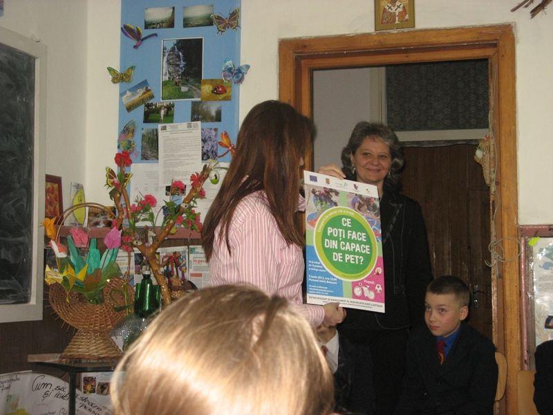 Activitatea derulată interactiv, s-a grefat pe fondul obiectivului general al proiectului - dezvoltare a unui sistem durabil de gestionare a deşeurilor, prin prezentarea de catre doamnele Flavia Bucerzan, Sandrina Lungu şi Elena Dascălu a unui material destinat promovării proiectului şi a unor concursuri organizate în luna iunie „Expoziţie pentru mediu”, la Muzeul Judeţean Botoşani şi „Ce poţi face din capace de PET?” pe Pietonalul Unirii din municipiul Botoşani şi distribuirea unor pliante informative privind reducerea impactului deşeurilor asupra mediului şi îmbunătăţirea sănătăţii noastre.