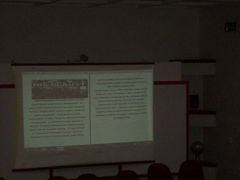 Luni, 8 octombrie 2012, în Aula “Dimitrie Pompeiu” de la C N “Grigore Ghica“ Dorohoi a avut loc o activitate de comemorare a victimelor Holocaustului din România.