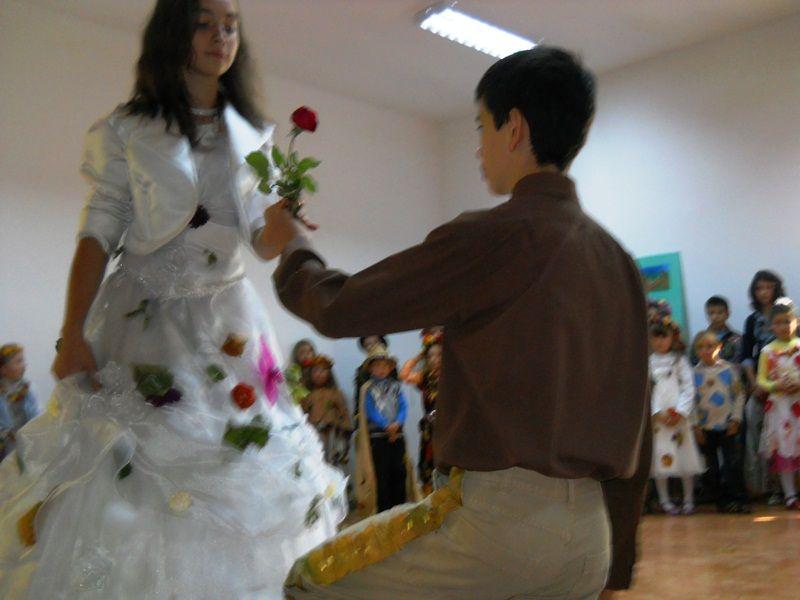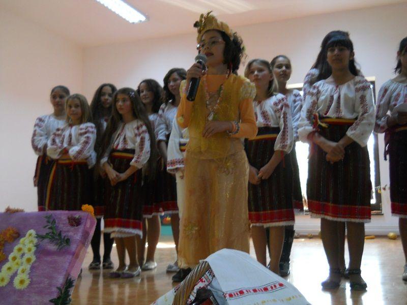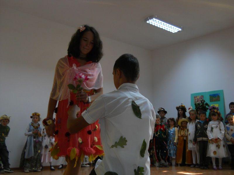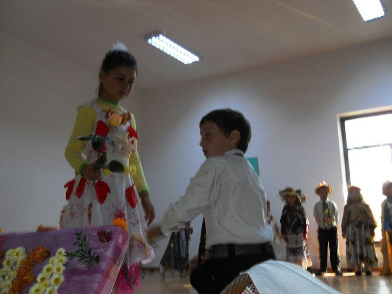 Pe scena Căminului Cultural, în aromele nostalgicei toamne, 52 de elevi şi-au etalat minunatele costume inspirate din culorile şi bogăţiile toamnei, într-un décor specific care a adunat flori, frunze, fructe şi legume.