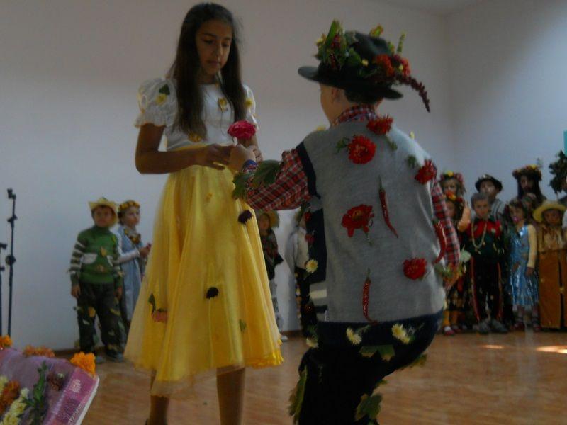 Pe scena Căminului Cultural, în aromele nostalgicei toamne, 52 de elevi şi-au etalat minunatele costume inspirate din culorile şi bogăţiile toamnei, într-un décor specific care a adunat flori, frunze, fructe şi legume.