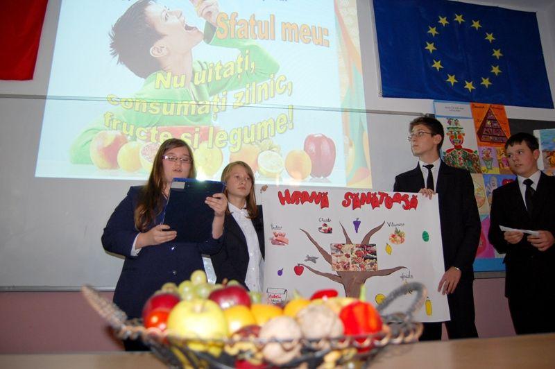 „În opinia mea, activitatea desfășurată în cursul zilei de azi a avut un impact pozitiv asupra tuturor participanților. În primul rând, fiecare elev și-a format o imagine corectă asupra beneficiilor unei alimentații sănătoase, bazate pe fructe și legume și a unui stil de viață armonios. Mens sana in corpore sano – au afirmat anticii și subscriu acestei idei. Voi fi mult mai atentă la regimul alimentar, pentru că știu că acesta îmi influențează în mod direct stilul de viață, performanțele școlare.” – eleva Calancea Ioana, clasa a VIII-a D.
