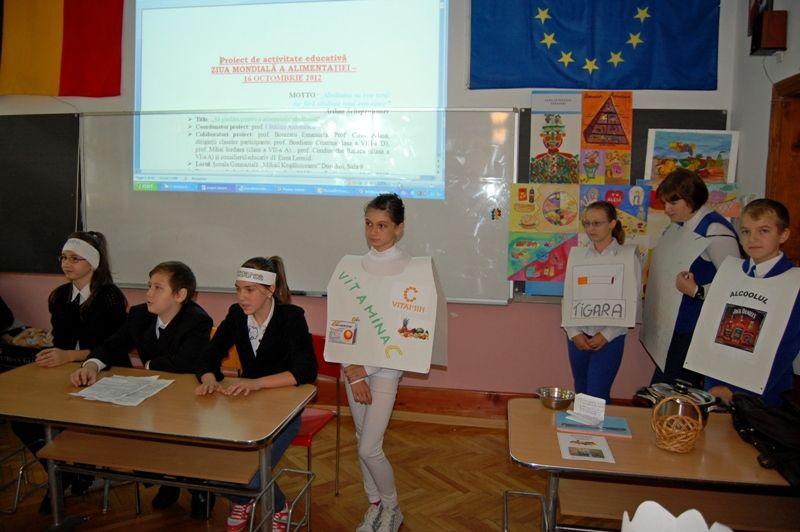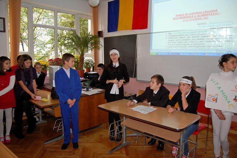 Având ca motto „Sănătatea nu este totul, dar fără sănătate totul este nimic” (Arthur Schopenhauer), evenimentul organizat marți, 16 octombrie 2012, la Școala Gimnazială „Mihail Kogălniceanu”, a reușit să marcheze, într-o manieră complexă, axată pe interdisciplinaritate, Ziua Mondială a Alimentației.