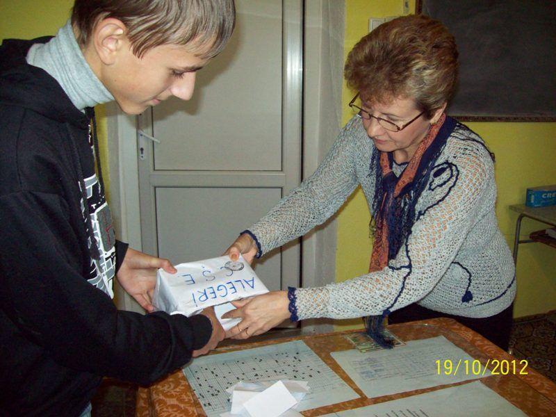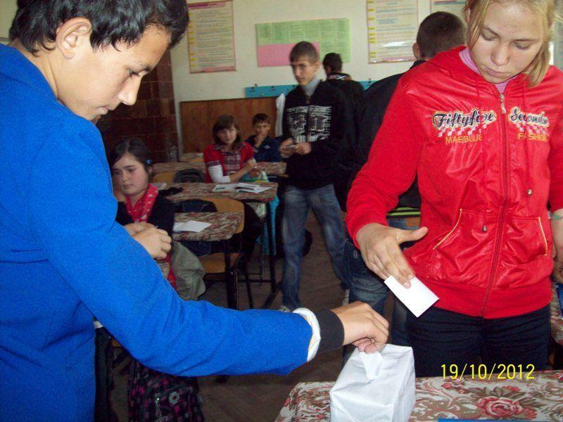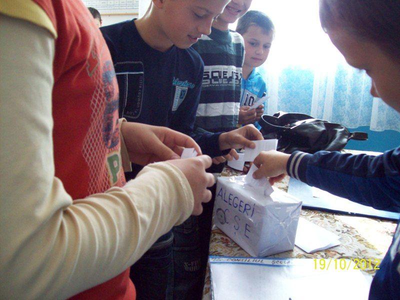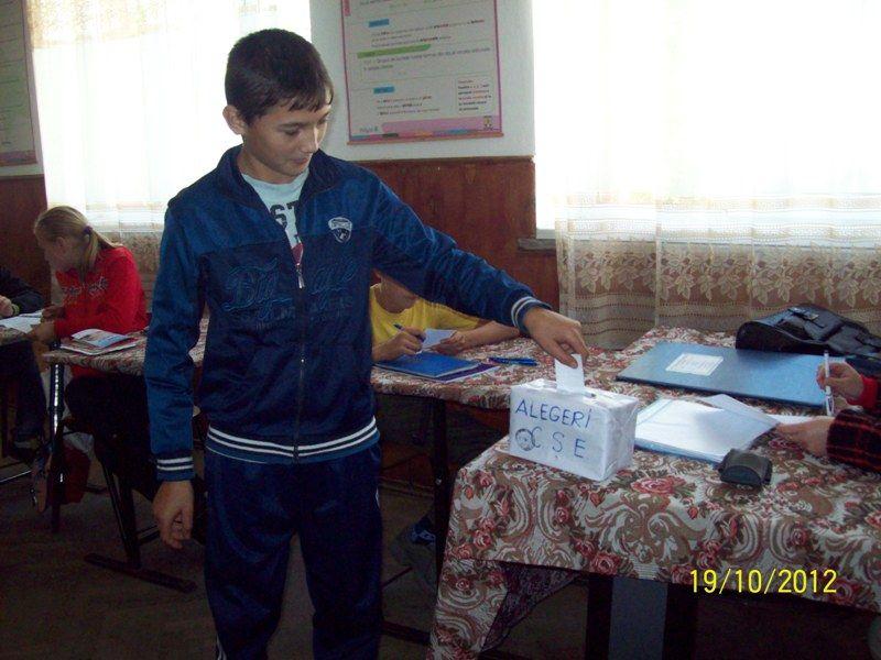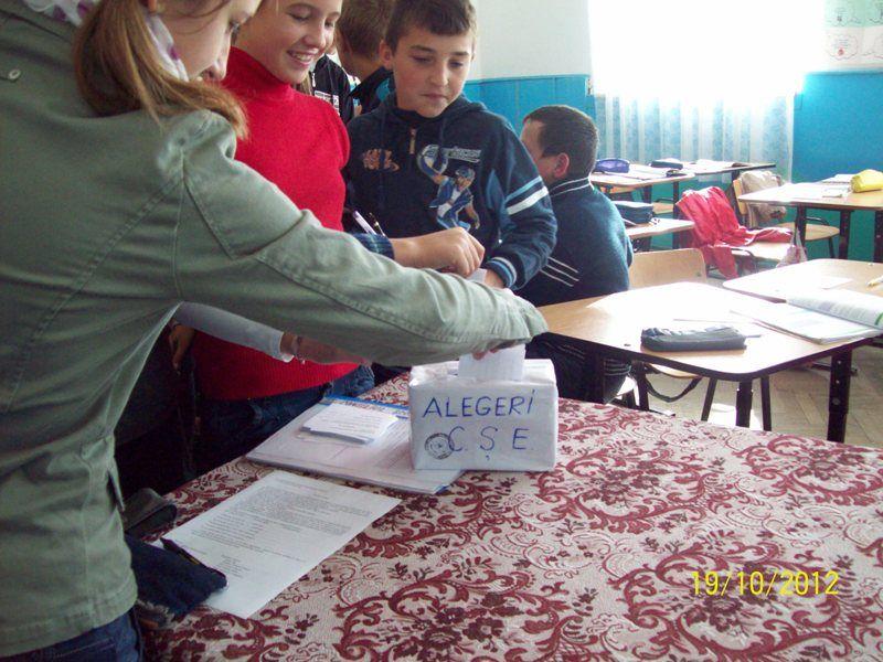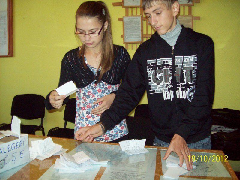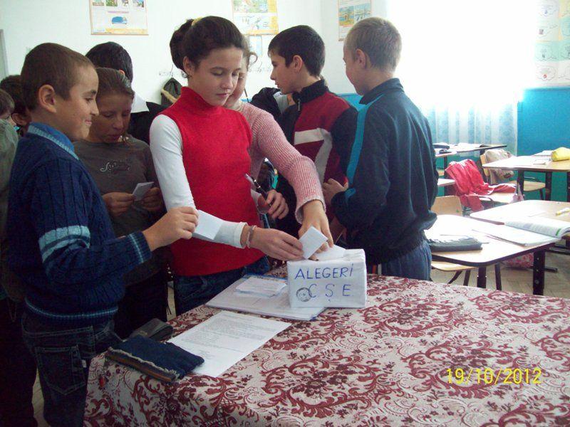 Fostul preşedinte al C.Ş.E. elevul Nistor Ilie şi secretarul aflat în exerciţiu, Abalaşei Rebeca-Cernica,  au participat activ la organizarea şi derularea acţiunii de vot. În cursa electorală au fost înscrişi 3 elevi, Oboroceanu Roxana-Lăcrămioara cl. a VI-a, Alexoaie Adrian-Sebastian cl. a V-a şi Hîncu Diana-Narcisa cl.a VI-a.
