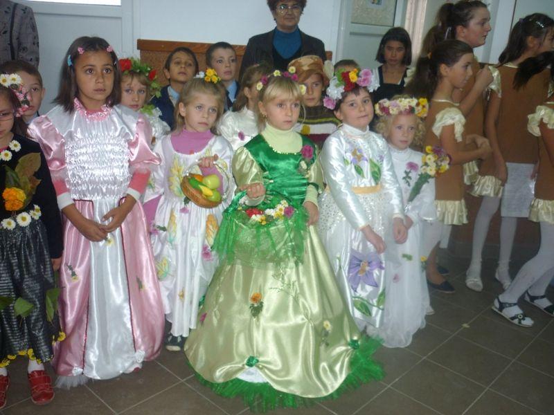 „Iat-o! …/Aşternând pământului,/ Haina ei cu trenă lungă,/ De culoarea vântului.” E Zâna Toamnă! De fapt sunt zânele-fetiţe, îmbrăcate pentru o paradă a rochiilor de toamnă, printre care s-a remarcat Tataru Bianca, din clasa I.