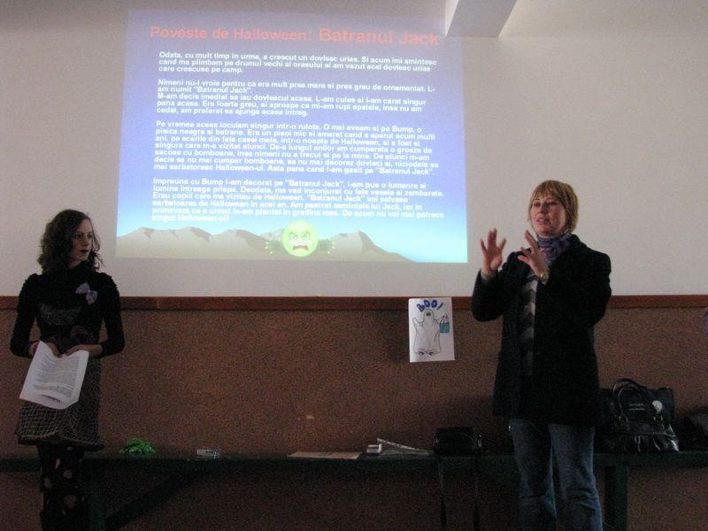 Anul acesta elevii claselor V-VIII de la Şcoala Gimnazială Dumbrăviţa, au încercat să afle cât mai multe despre Halloween dar şi să redea atmosfera specifică acestei sărbători. Activitatea a cuprins prezentări, referate despre Halloween (origini, semnificaţii, simboluri), activităţi specifice, concursuri (de afişe, desene şi de modelare a dovlecilor), momente artistice (cântece, poezii, scenete, dansuri), parada a costumelor de Halloween, glume şi jocuri – toate apreciate de elevi. Elevii au fost răsplătiţi în final (pentru munca şi implicarea lor) prin diplome şi bineînţeles, bomboane.
