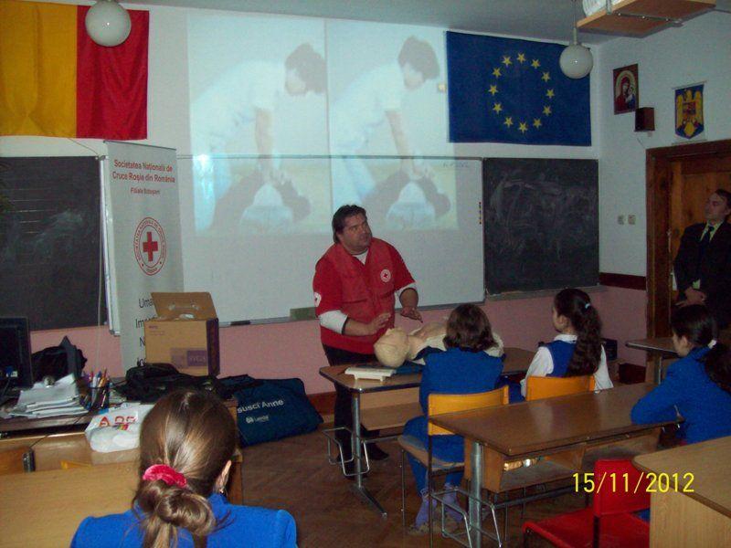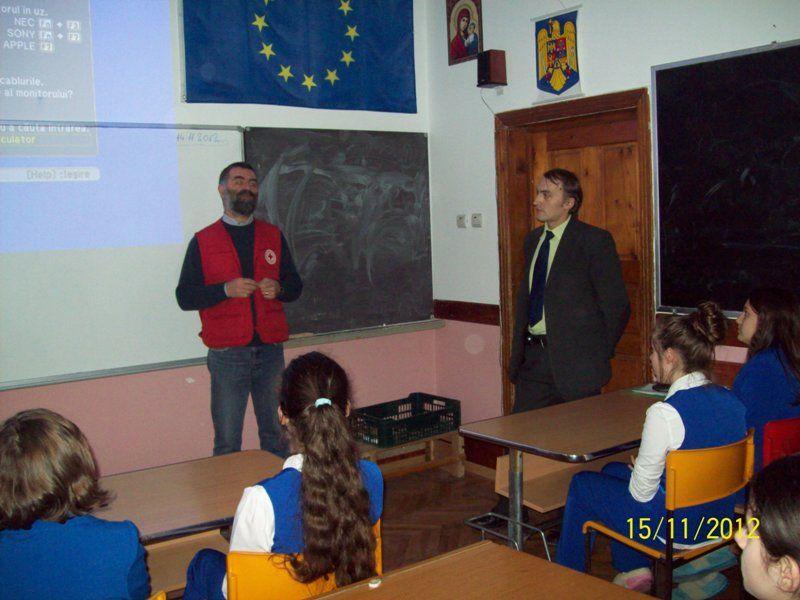Activitatea, coordonată de prof. Ghebac Ovidiu şi prof. Mîndrescu Ciprian, a avut drept invitaţi pe d-l. Măciucă Eduard – dir. al Filialei Botoşani a Crucii Roşii şi pe d-l. Botezatu Constantin – referent al Filialei Botoşani a Crucii Roşii.