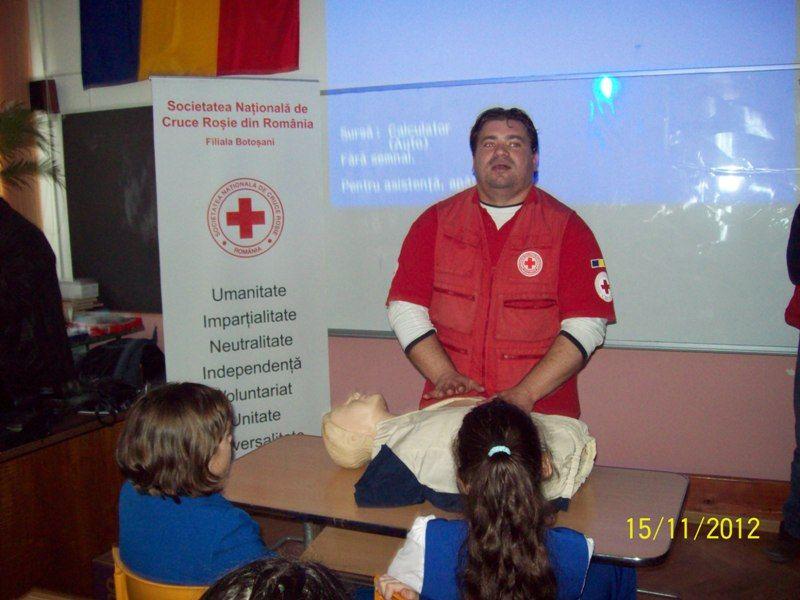 După ce au fost introduşi în specificul activităţii Crucii Roşii Române, în general, şi al Filialei Botoşani – în special, elevilor le-au fost prezentate o serie de tehnici de prim ajutor şi modul în care trebuie să acţioneze în astfel de situaţii. Cei mai curajoşi dintre ei au transpus în practică cele învăţate sub îndrumarea reprezentanţilor Crucii Roşii.