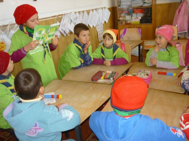 A fost popularizat proiectul prin distribuire de pliante atât elevilor cât şi preşcolarilor din şcoală noastră. Ghizii unităţii de flori „Narcisa”, lider înv. Rudei Lucia , organizaţi în patrule, au aprofundat cunoştinţele privind managementul deşeurilor completând rebusuri şi desfăşurând jocuri de rol tematice.