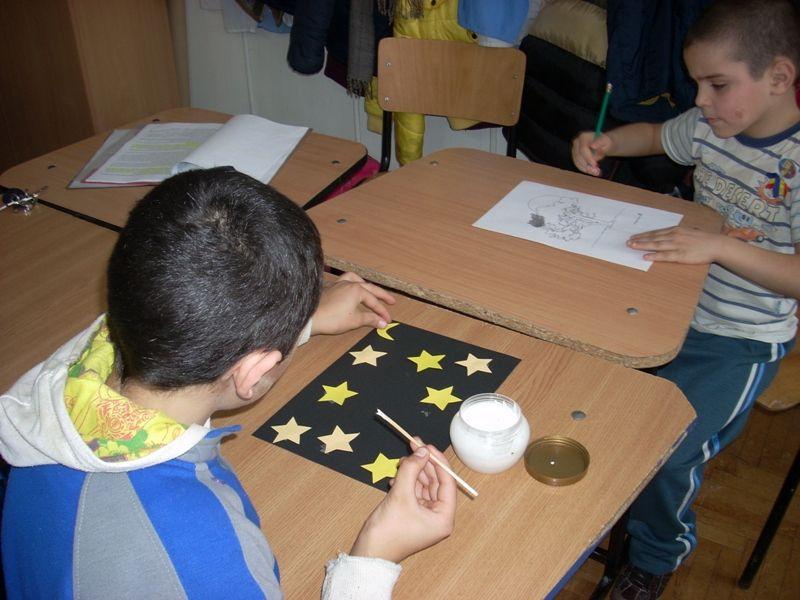 Pe un fond muzical plăcut, mândri de ecusoanele pe care le purtau, elevii au organizat un parcurs festiv, cu audienţă, în care ei au fost actori şi pictori, au trăit momente de bucurie, emoţie, şi-au manifestat liber sentimentele şi inspiraţi de opera marelui poet, au realizat colaje deosebite - inspirate din opera poetului: „Cerul cu stele”, „Lacul cu nuferi”.