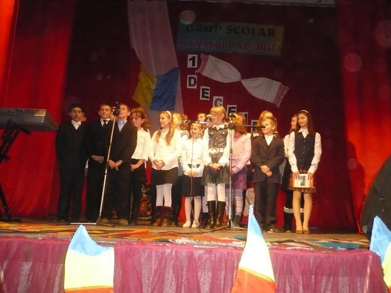 Ziua de 1 Decembrie este sarbatorita de toti romanii, oriunde s-ar afla ei. Pentru sarbatorirea Zilei Nationale a Romaniei, sub genericul ”La multi ani, Romania!”, la Sala Teatrului din Dorohoi, elevii Grupului Scolar ”Al.Vlahuta“ Sendriceni sub coordonarea prof. Macovei Loredana, prof. Gafitanu Corina si prof. Gradinaru Violeta, au evoluat intr-un spectacol artistic cu un splendid cadru organizatoric.
