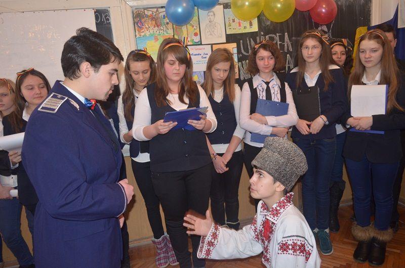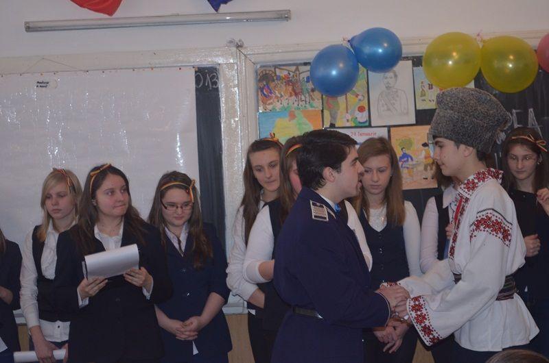 Îndrumaţi de domnul profesor doctor Vasile Adăscăliţei, elevii clasei a VIII-a D s-au pregătit cu entuziasm pentru a elogia memorabilul eveniment. Activitatea a debutat cu o sesiune de referate în care tinerii pasionaţi de istorie au „disecat” importanţa zilei de 24 ianuarie 1859, numită şi „Ziua cea mare a veacului”, au subliniat semnificaţia evenimentului istoric şi au dat expresie sentimentului patriotic prin scrieri literare şi manifestări artistice.