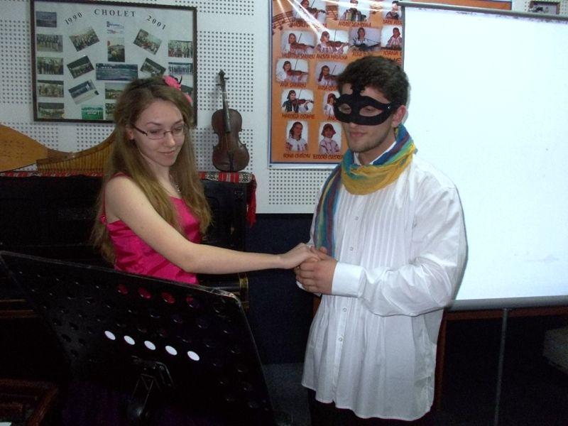 Anna Karenina nu este doar o poveste de dragoste, ci şi o dramă copleşitoare, în care eroina alege calea autodistrugerii. Personalitatea enigmatică a Annei este elementul care atrage de secole cititori din întreaga lume); Tristan si Isolda – cu sensibilitate omagiată de eleva Andreea Anton (Povestea dintre Tristan şi Isolda este una dintre cele mai frumoase poveşti de iubire şi porneşte de la mitul celtic al iubirii invincibile. Aceste două nume nu se pot rosti separat, cand spui Tristan, automat îţi vine continuarea, Isolda. Legenda glorifică forţa eternă a iubirii, singura care dă legitimitate uniunii dintre Tristan şi Isolda. Deşi finalul este unul tragic şi aduce moartea celor doi îndrăgostiţi, mesajul legendei este acela că atunci când există iubire adevărată, deşi forţaţi de împrejurări doi oameni nu pot fi împreună, dragostea lor poate rămâne sinceră şi puternică până la final); şi Romeo si Julieta – enigmatic şi profund marcată de prestaţia covărşitoare a elevilor Andreea Cărauşu şi Eduard Rotariu (Povestea iubirii dintre Romeo şi Julieta, este probabil cea mai cunoscută poveste de dragoste din istoria omenirii. Tragedia în cinci acte este opera marelui dramaturg William Shakespeare.