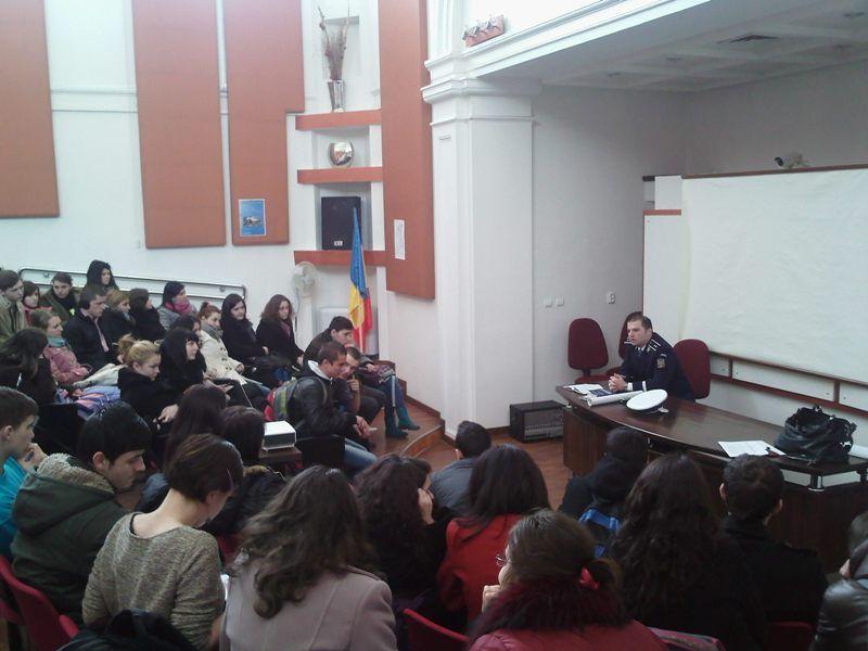 Colegiul Național „Grigore Ghica” a fost vizitat joi, 21 februarie, de Poliţia Rutieră Dorohoi pentru a discuta cu elevii aspecte legate de comportamente şi atitudini privind circulaţia pe drumurile publice, atât în calitate de pieton cât şi de conducător auto.