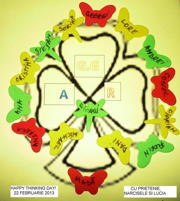 Pe data de 22 februarie 2013 la Şcoala Primară Nr. 2 Sauceniţa am sărbatorit, ca in fiecare an, Ziua Mondiala a Gandirii (World Thinking Day) în cadrul unitatii „Narcisa". Peste 10 milioane de ghizi si cercetaşi din intreaga lume au sărbatorit alături de noi. Ziua Mondială a Gândirii a fost sarbătorită prima dată in anul 1926, cu ocazia celei de a patra Conferinţe Internaţionale a Fetelor Ghide si Fetelor Cercetaşe, organizată in SUA. Reprezintă o zi specială când ghizii si cercetaşii din intreaga lume se gândesc unii la ceilalţi si işi trimit mesaje de prietenie.