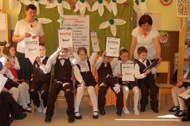 Sala de clasă a fost neîncăpătoare pentru mulţimea prezentă. Au luat parte părinţi, bunici, reprezentanţi ai Şcolii cu clasele I-VIII „Al.I.Cuza” doamnele director Pădurariu Liliana şi Afloarei Simona, cadrele didactice ale şcolii, fostele doamne educatoare ale elevilor, domnul Zvâncă Petrea, membru al sindicatului SIP FEN BT.
