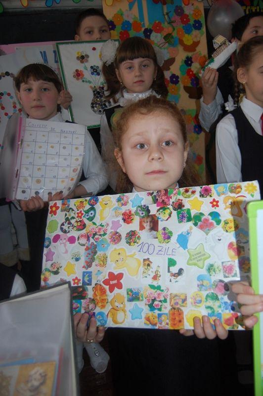 Îndrumaţi de învăţătoarele Dumitriu Elena şi Olaru Rodica au sărbătorit alături de părinţi şi bunici ,, centenarul” zilelor de şcoală. A fost o adevărată lecţie deschisă unde s-au prezentat activităţi specifice, s-a cântat şi s-au recitat poezii. În această atmosferă de sărbătoare s-au prezentat colecţii frumoase şi ingenioase care au pus în valoare creativitatea copiilor, dorinţa lor de cunoaştere şi afirmare. Activitatea pe centre a încheiat agenda zilei.
