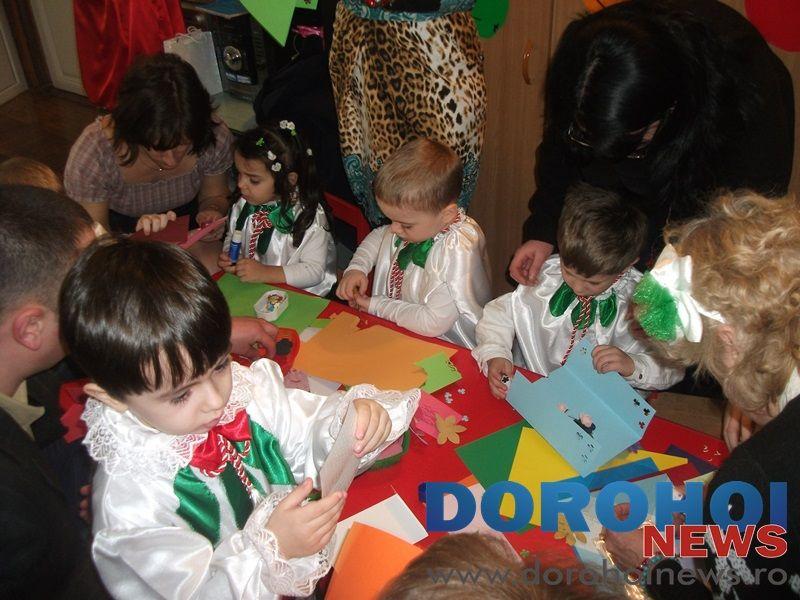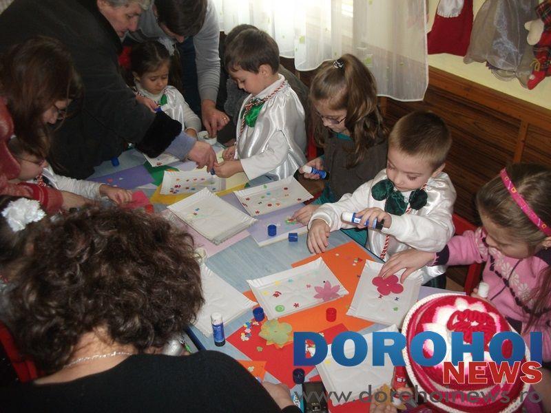 Costumaţi în ghiocei aceştia şi-au exprimat dragostea şi aprecierea în versuri şi cântec apoi au creat ,în cadrul unei activităţi cu părinţii, „mărţişoare pentru mama”, „felicitări pentru mama” şi „tablouri pentru mama”, toată activitatea terminându-se printr-o frumoasă expoziţie dedicată mamei.