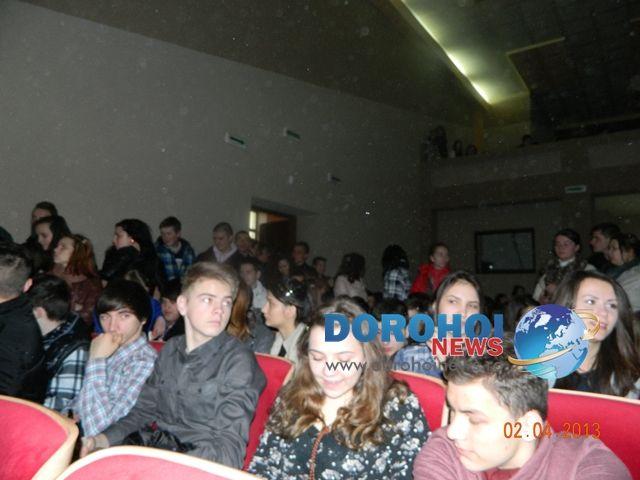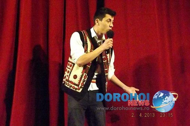 Sala Teatrului din Dorohoi a gazduit miercuri, 3 Aprilie, un spectacol sustinut de elevii Colegiului National „Grigore Ghica”, parteneri in cadrul proiectului „Să ştii mai multe, să fii mai bun!”
