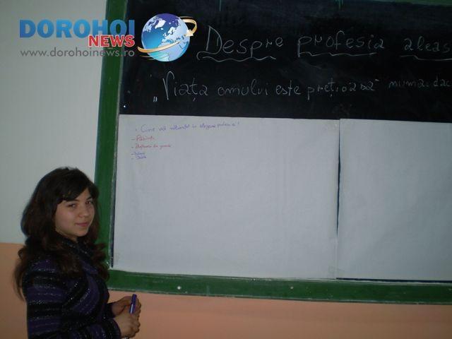 La activităţi au participat reprezentaţi ai Poliţiei Municipiului Dorohoi, medici, psihologul şcolar, preoţi. Elevii au vizitat muzeele din oraşul Dorohoi, Unitatea de Pompieri din Dorohoi, au făcut vizite la unităţile de producţie din zonă.