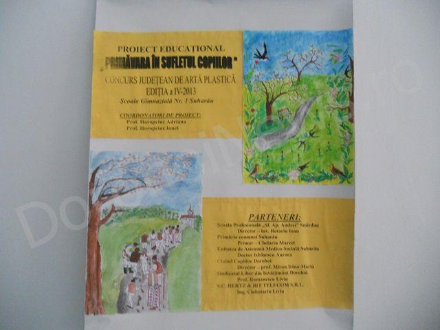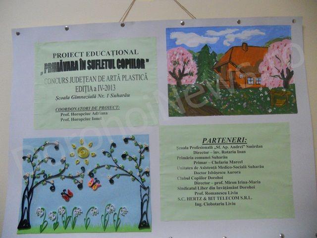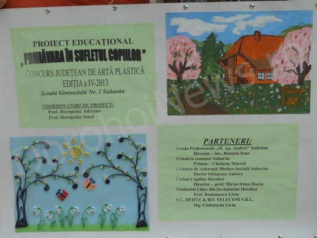 Proiectul a implicat parteneri diverşi (Clubul Copiilor si Elevilor Dorohoi - Director – prof. Irina-Maria Miron, Primăria comunei Suharău - Primar – Marcel Chelariu, Unitatea de Asistenţă Medico-Socială Suharău - Doctor Aurora Isbăşescu, Sindicatul Liber din Invăţământ Dorohoi - prof. Liviu Romanescu) si colaboratori realmente implicaţi (Comitetul de părinţi si S.C. Hertz & Bit Telecom S.R.L.), punând accentul pe relaţionarea cu comunitatea. Beneficiind de parteneriatul cu Clubul Copiilor si Elevilor Dorohoi, activitatea finalizatoare pentru anul şcolar 2012-2013, a însemnat un real succes, prin expertiza didactica si amploarea competiţiei (4 secţiuni – COLAJE, PICTURA, DESEN, GRAFICA PE CALCULATOR, 33 unităţi şcolare, 63 cadre didactice, 12 părinţi, 158 de premii, pentru a creiona o scurtă casetă tehnică a competiţiei).