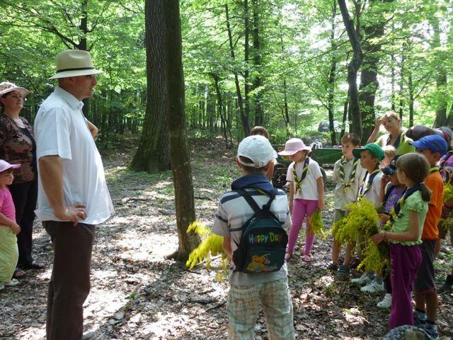 Ne-am continuat drumul repejor pentru că în pădure ne aştepta d-l primar Sorin Gânga să ne ajute să descifrăm câte ceva din tainele şi frumuseţile pădurii. Am învăţat despre specii de arbori, despre ciuperci, despre vieţuitoarele pădurii şi mai ales am îmbrăţişat copacii energizându-ne. Ne-am confecţionat coroniţe din sânzâiene şi în poieniţa de lângă Mănăstirea Gorovei opt Flori au depus Promisiunea. Bucuria noastră a fost întregită de faptul că, de astăzi avem un membru de onoare al A.G.G.R în persoana d-lui primar Sorin Gânga.