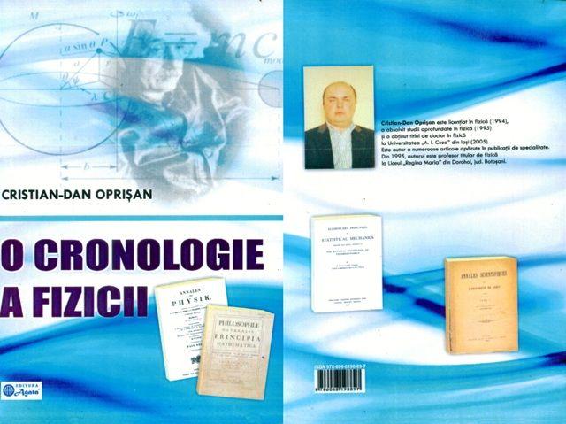 Cartea prof. dr. Cristian-Dan Oprişan, sugestiv intitulată „O cronologie a fizicii”, apărută în luna august 2013, la Editura AGATA din Botoşani, constituie o veritabilă şi provocatoare incursiune în meandrele istoriei marilor descoperiri, care au marcat evoluţia fizicii de-a lungul timpului.