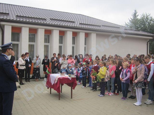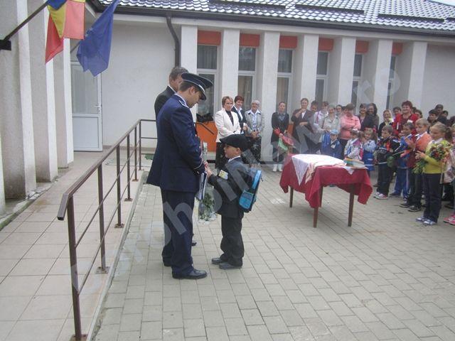 Mai departe cuvântul a fost preluat de agentul de poliţie, Maxim Mihai din partea postului comunal de poliţie care a precizat următoarele aspecte: „Şi în acest nou an şcolar vom fi aproape de elevi şi vom încerca să le transmitem alături de dumneavoastră, un minim bagaj de cunoştinţe, de la regulile elementare de circulaţie şi până la recomandări de urmat în diverse situaţii, toate aceste fiind menite să-i ferească de orice riscuri care le-ar putea afecta siguranţa proprie. Totodată, ca în fiecare perioadă a noului an şcolar, zonele în care sunt situate şcolile vor fi incluse în traseele echipajelor de poliţie, scopul fiind acela al descurajării oricăror comportamente potenţial infracţionale, dar şi pentru a ne plasa în sprijinul oricărui copil care întâmpină dificultăţi. Ne declarăm aşadar şi în acest an partenerii dumneavoastră, dascăli şi părinţi, în misiunea absolută a protejării copiilor noştri.”