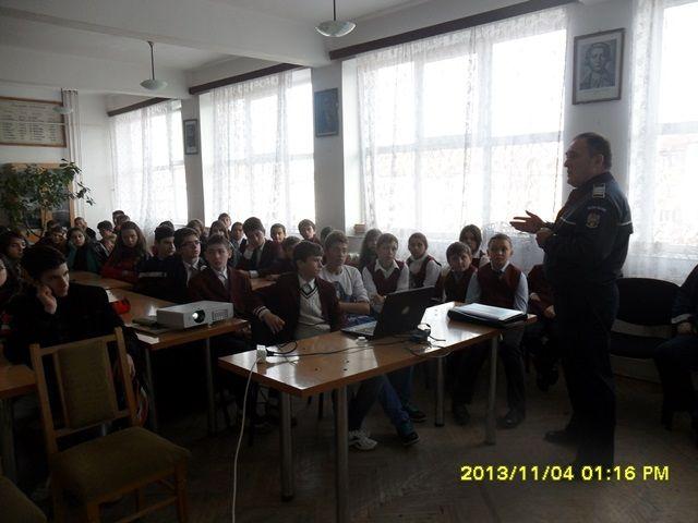 Elevii claselor a V-a B, a VI-a B și a VIII-a B ai Școlii Gimnaziale „A.I.Cuza Dorohoi”, coordonați de cadrele didactice: prof. Botezatu Emanuela, prof. Conțevici Gelu, prof. Pădurariu Alina, dl. psiholog Lupașcu Robert, d-na director prof. Pădurariu Liliana și reprezentanții Poliției Dorohoi: dl. Huțu Marinel și dl. Nichilciuc Alexandru, au participat în data de 4.XI.2013 la o activitate de combatere a violenței.
