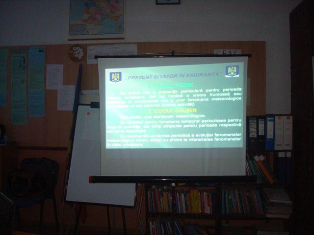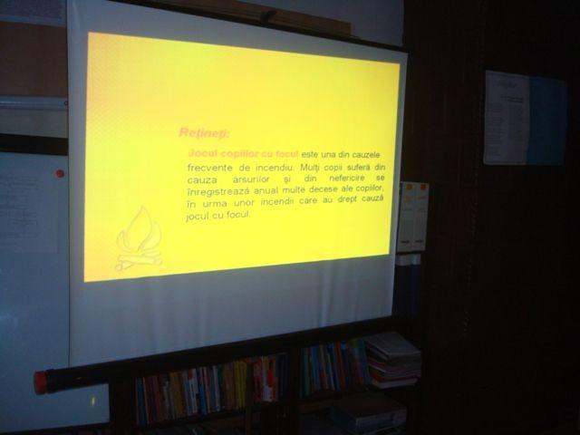 La această activitate a participat şi diriginţii claselor gimnaziale, şi a avut ca scop educarea preventivă a elevilor prin vizionarea următoarelor spoturi, filme şi prezentări power-point pe linie de situaţii de urgenţă: