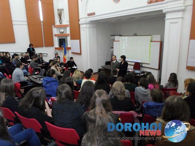 La această activitate au participat elevii colegiului şi colegii lor mai mici de la Şcoala Gimnazială „Mihail Kogălniceanu” Dorohoi. Aceștia au discutat, au urmărit spoturi publicitare, filmuleţe şi prezentări Power Point, au comentat pe marginea cărţii de benzi desenate „Il était trop de fois…” și au luat parte la lansarea revistei „Avocatul Elevilor”.