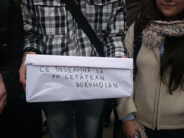 Implicarea profesorilor şi a elevilor s-a materializat în următoarele activităţi: strângerea de informaţii şi opinii ale cetăţenilor aparţinând comunităţii dorohoiene („Utopia Dorohoiul”, prof. coord. Pavel Daniela şi prof. Gherman Willy), informare privind drepturile şi responsabilităţile cetăţeanului european, încheiat cu un concurs interactiv („Şi eu sunt cetăţean european” prof. coord. Baroi Lidia, „Cetăţean european-salarii europene”, prof. coord. Ignat Luminiţa), dezbatere academică (prof. coord. Ifrim Monica), lectorat pe tema cetăţeniei active („Cetăţenie activă, cetăţenie responsabilă”, prof. coord. Iacob Erzilia) şi expoziţie de desene („Artă şi tradiţie”, prof. coord. Blaga Dorinel). Activităţile s-au desfăşurat în parteneriat cu Şcoala Gimnazială Nr.7 „Al. I. Cuza” Dorohoi şi cu „Asociaţia Iniţiative 2010” Botoşani.