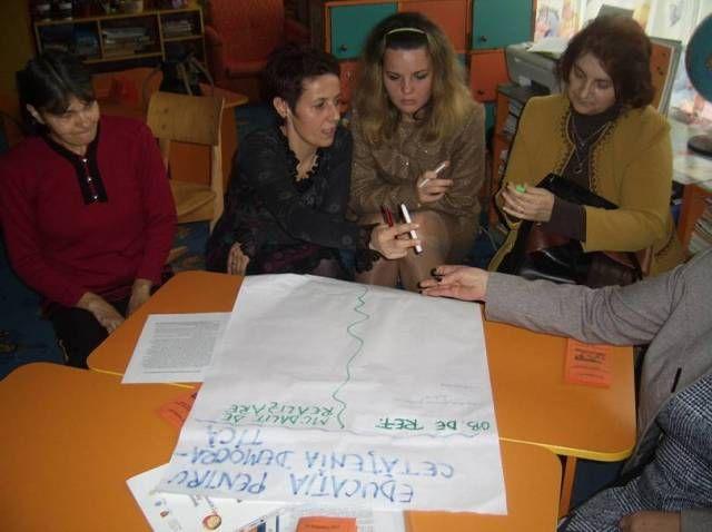 Lucrul pe ateliere realizat la sfarsitul activitatii a antrenat doamnele educatoare prezente sa colaboreze si impreuna sa formuleze obiective de urmarit pentru un anumit tip de educatie, intelegand astfel ca rolul gradinitei a devenit mult mai complex: trebuie sa permita asteptari pentru fiecare, sa asigure caldura si grija, sprijin reciproc, cooperare, incredere, respect pentru diferente, colegialitate, asumarea riscurilor, invatare continua, parteneriate, etc.
