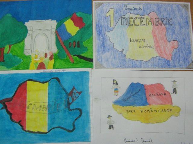 Sub indrumarea profesoarei Micliuc Elena, elevii au realizat o expozitie de desene dedicat zilei de 1 Decembrie, Doamna profesoara de muzica Crusninschi Sorina si profesorul de educatie fizica domnul Guleac Liviu au pregatit o sarabanda de cantece si jocuri patriorice cu elevii de gimnaziu.