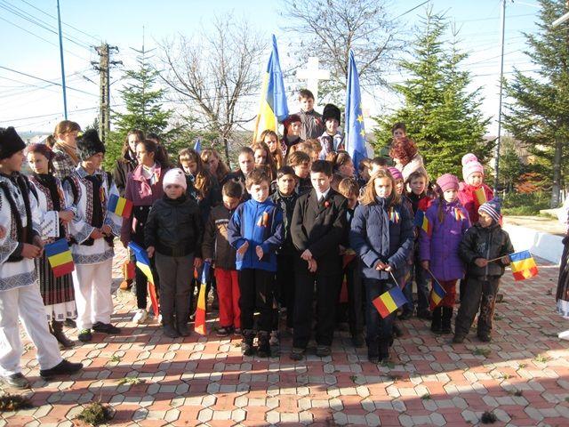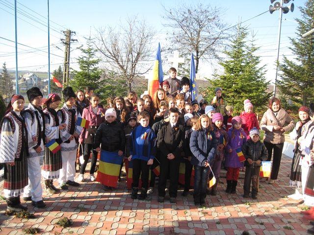 Elevii nostri au cantat, au dansat, au depus o frumoasa coroana de flori in cinstea eroilor cazuti pe campurile de lupta dupa care au fost rasplatiti cu dulciuri si aplauze.