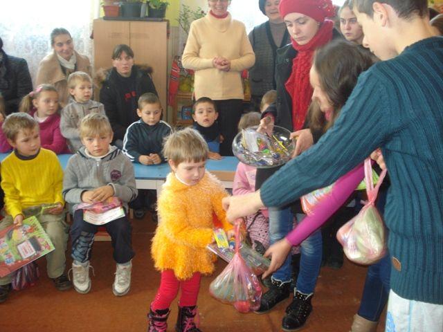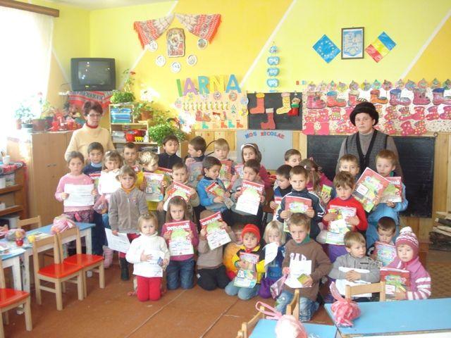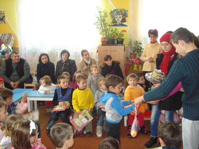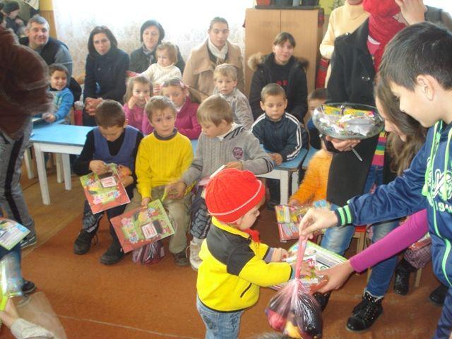 Moş Nicolae - patronul copiilor şi simbolul carităţii - şi-a trimis mesagerii, elevii claselor V-VIII, la cei 36 de copii de grădiniţă pentru a le împărţi dulciuri şi alte daruri.