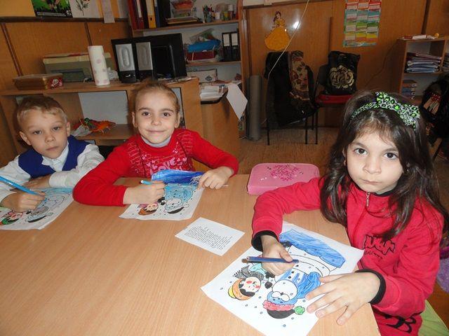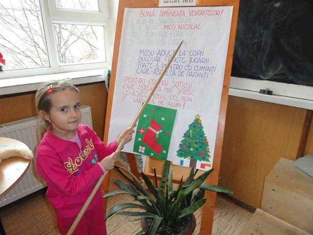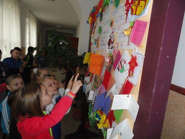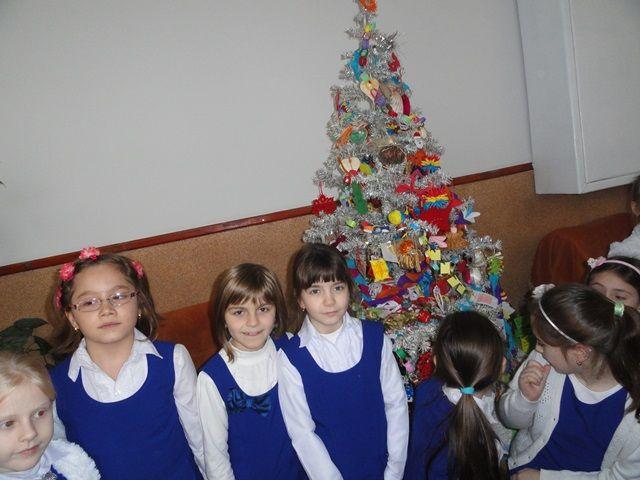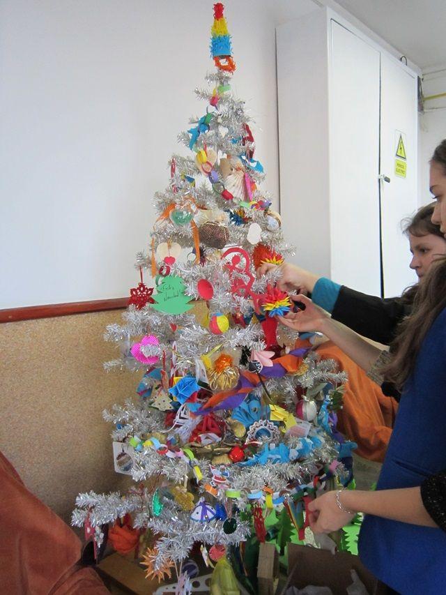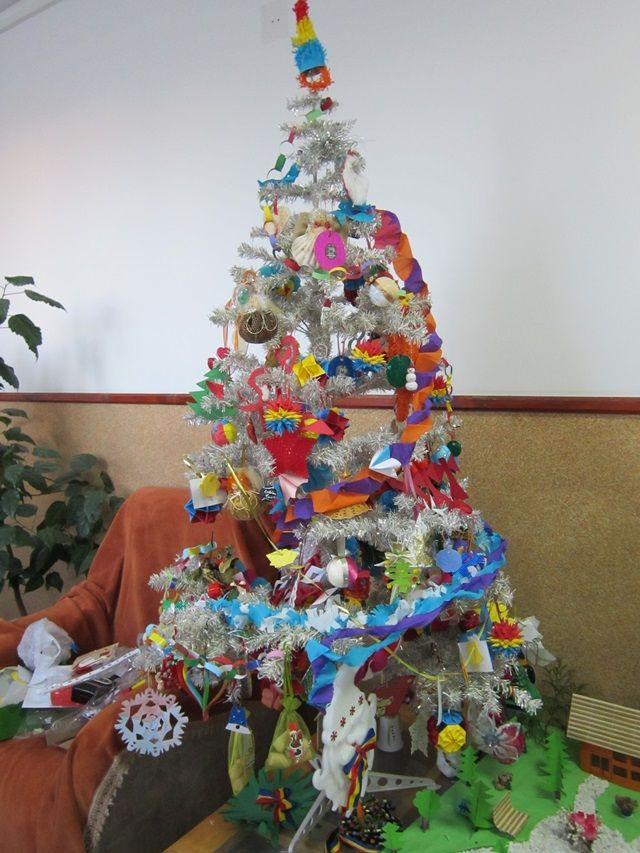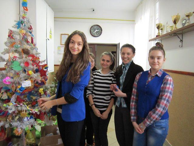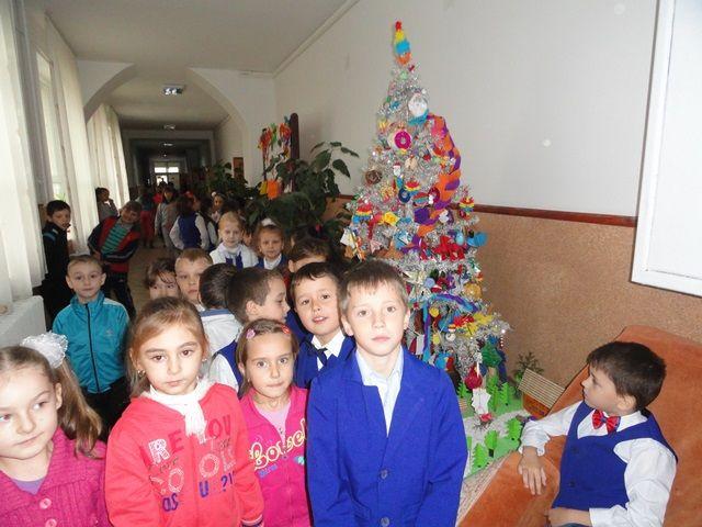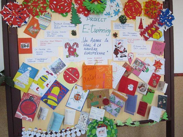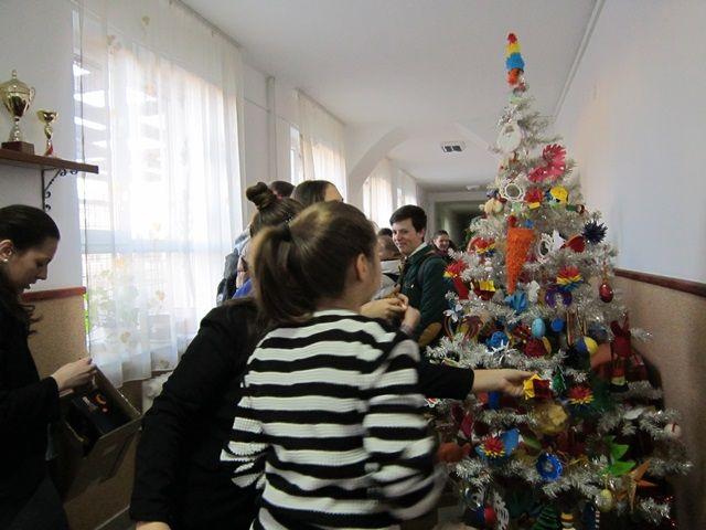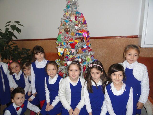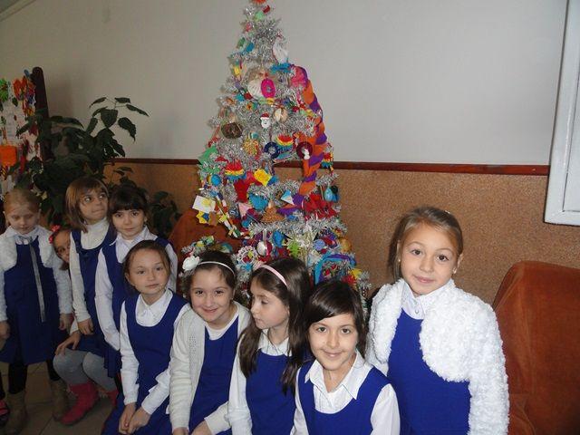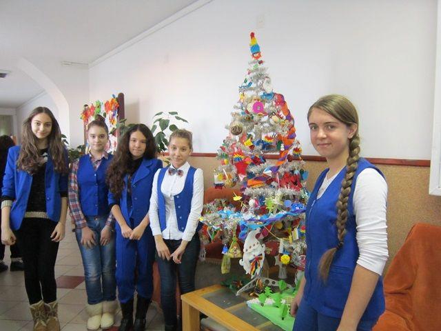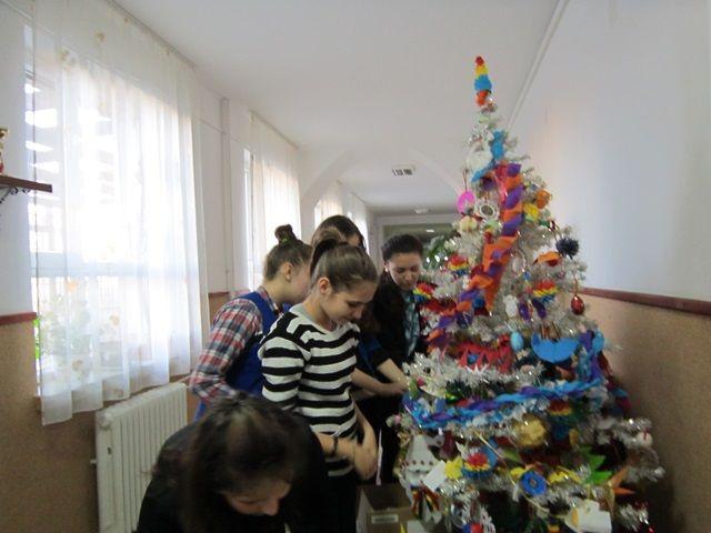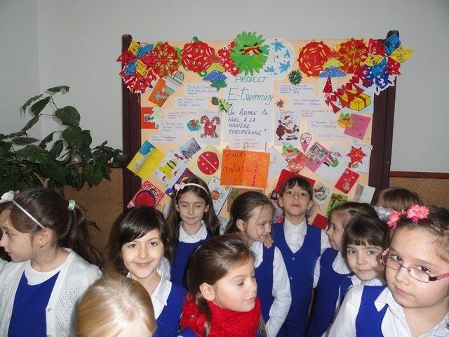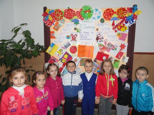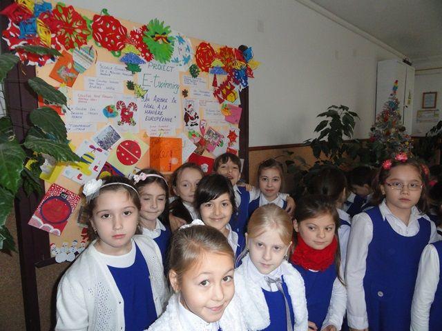Folosind în mod liber propria imaginaţie şi materiale diverse (textile, plastic, hârtie, materiale reciclabile) plini de entuziasm şi creativitate, elevii şcolii de la clasele primare: pregătitoare (coord. înv. Manole Rodica şi Cherciuc Silvia), clasa I B (coord. înv. Dănilă Ana) şi elevi de la clasele de gimnaziu coordonaţi de prof. Sandu Mirela şi Condurache Raluca au confecţionat decoraţiuni pentru pomul de Crăciun, au creat şi scris felicitări de Crăciun, au relatat despre tradiţiile sărbătorilor de iarnă la români, au înregistrat colinde tradiţionale. După realizarea schimbului de decoraţiuni şi felicitări între şcoli, în fiecare şcoala parteneră a fost decorat un brad cu obiecte create de elevi şi s-a amenajat o expoziţie cu cărţi poştale şi felicitări de Crăciun, cu urări în limbile ţărilor partenere.