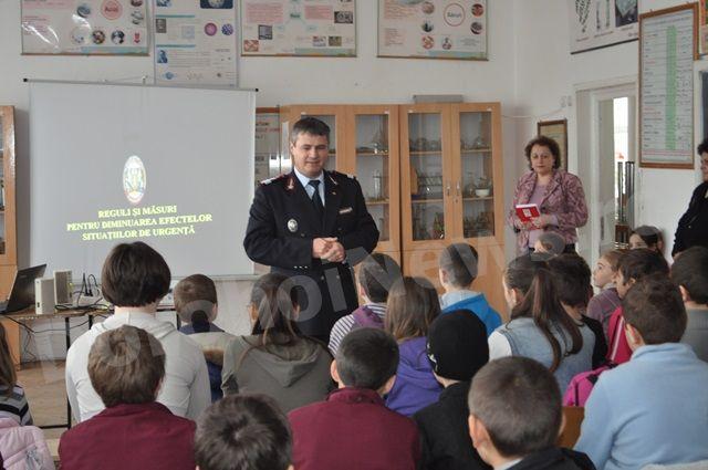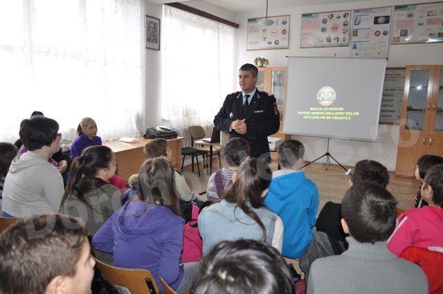 De data aceasta profesorii au venit de la Inspectoratul pentru Situaţii de Urgenţă „N. Iorga” al judeţului Botoşani care au predat lecții pe teme de securitate la incendiu și de protecție civilă elevilor dar și cadrelor didactice de la Școala gimnazială „A.I.Cuza”.