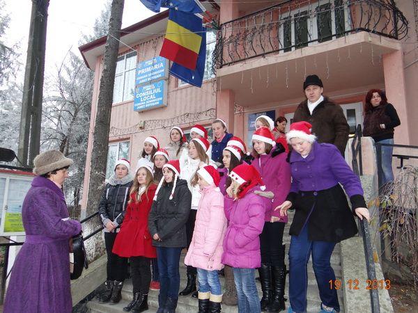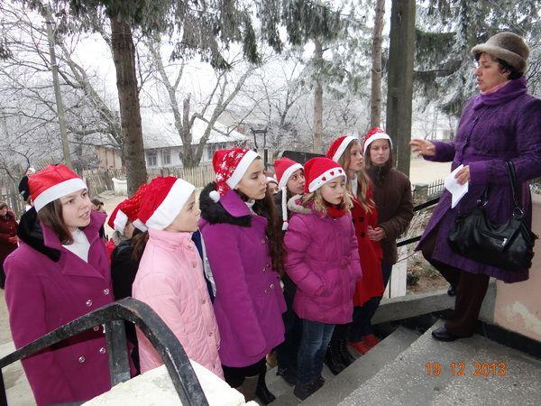 După adevăratul spectacol de la primărie, ne-am îndreptat pașii spre liceul comunei noastre unde, la poala unul brad frumos împodobit, grupul de colindători a urat profesorii, adevărații meteori care se mistuie pentru a lumina universul cunoașterii.