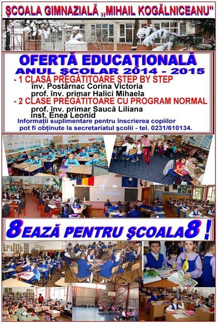 Şcoala Gimnazială „Mihail Kogălniceanu” Dorohoi vă prezintă oferta educațională pentru anul şcolar 2014-2015.
