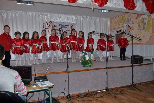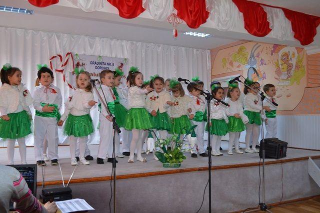 În holul unității a putut fi admirată o frumoasă expoziție cu mărțișoare, felicitări și lucrări sosite din toate colțurile țării: Botoșani, Iași, Constanța, Argeș, Sălaj, Arad, București, Mehedinți iar pe scenă au fost aplaudate evoluțiile copiilor de la grădinițele din Dorohoi: 6, 8, 9, 10 Grădinița Broscăuți, Grădinița Brăești, Grădinița cu PP. Nr. 18 Botoșani, Grădinița-Școala Gimnazială Al. I. Cuza și Școala Gimnazială Spiru Haret Dorohoi.