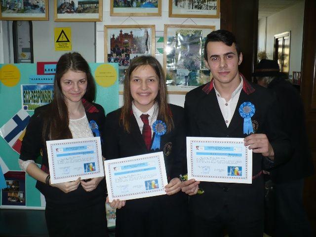 Premiul I – „Notre patrimoine” -Broşura de promovare a obiectivelor UNESCO din Bulgaria, Franţa, Italia, Grecia şi România – prezentat de eleva Pânzariu Diana, din clasa a X-a D