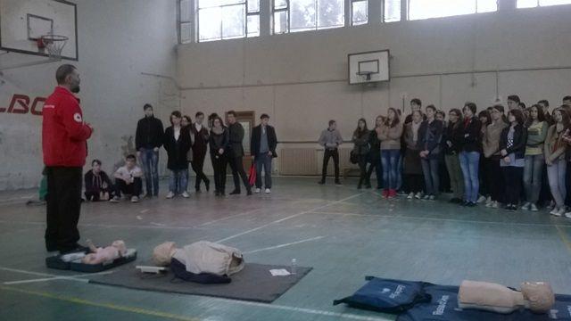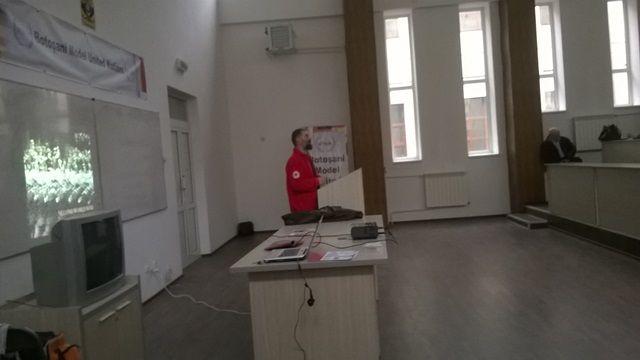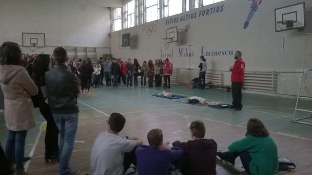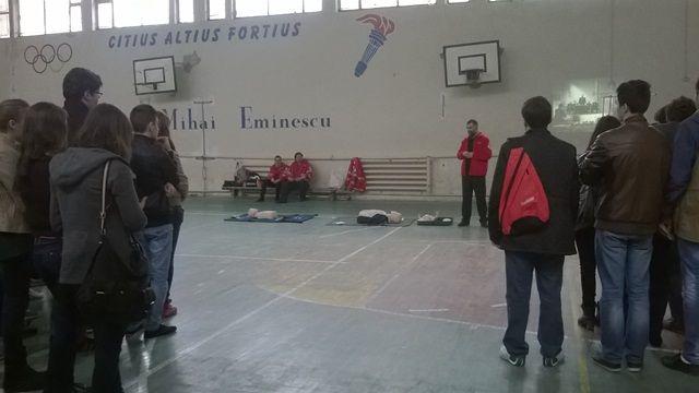 Luni 07.04.2014, au fost programate intalniri la cele doua mari licee din municipiul Botosani: Colegiul  National „A.T. Laurian” si Colegiul National „Mihai Eminescu“ Botosani. In cele doua licee, dl. Director Eduard Maciuca, impreuna cu voluntari ai filialei au prezentat celor cca. 300 elevi informatii legate de istoria si activitatile Miscarii Internationale de Cruce Rosie si Semiluna Rosie si ale Crucii Rosii Romane, despre voluntariatsi cum pot deveni tinerii voluntari iar in partea a doua a intalnirii, o echipa formata din instructori de prim ajutor ai Crucii Rosii dar si voluntari elevi ai celor doua licee au facut cateva demonstratii practice vizand acordarea primului ajutor premedical in diferite situatii. Apoi, ceilalti elevi au fost invitati sa execute, sub indrumarea voluntarilor,manevre practice ( resuscitarea cardio-pulmonara, primul ajutor in hemoragii, traumatisme, etc). Acelasi gen de activitati se vor desfasura si in alte locatii, dupa cum urmeaza: